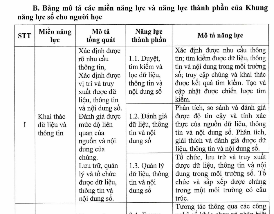 Hình 1: Khung năng lực Số được giới thiệu tại buổi tập huấn
